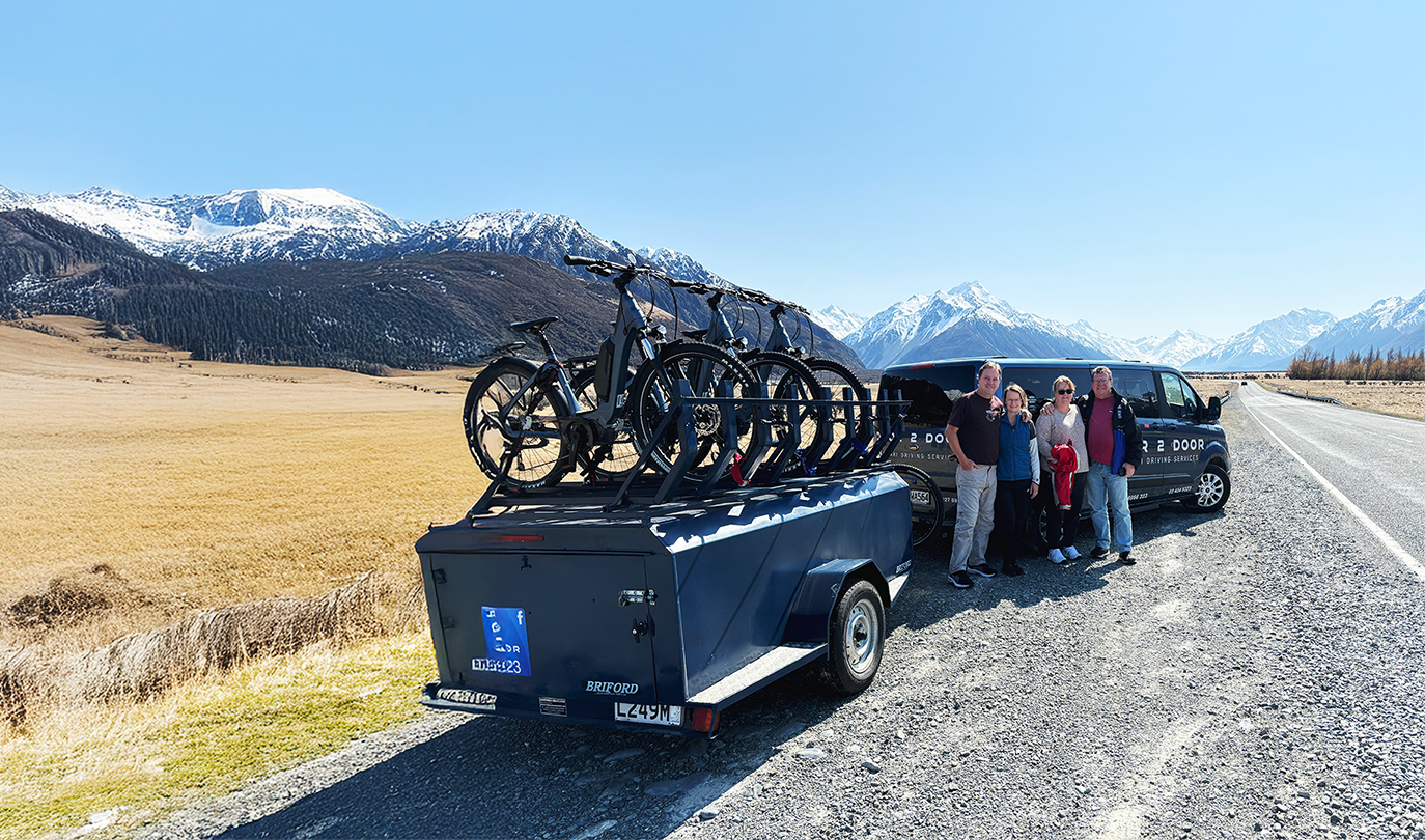 We’re also a busy family at home, with two wonderful kids—Zoe and Liam—plus two cats, two dogs, and twelve chickens (the number 2 seems to follow us everywhere!). After completing the Alps 2 Ocean Trail with friends, we realised how valuable flexible transport could be for visitors and cyclists. That’s when Door2Door was born—to help make your journeys easier, and more enjoyable.